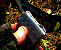 or pop bottle alongside the road. I found one, borrowed someone’s knife, cut an
