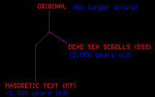 It must be stressed, and stressed again, that WE HAVE NO ORIGINAL BIBLICAL TEXTS, Old or New Testament. An original existed, but all we have are copies which have been passed down over a long period of time. The original texts were passed down and at some point in time went two directions: (1) to the DSS; and (2) to the MT.